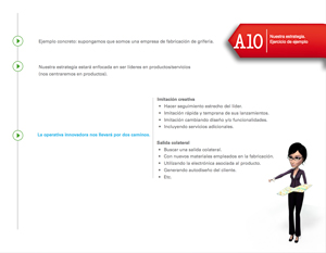 Creativia e Innovatio van a ser nuestros personajes-guía a lo largo de todo el libro, los que nos ayudarán a visualizar las fichas e incluso nos aportarán ideas para cumplimentarlas. Creativia es una joven con una gran capacidad para visualizar nuevas ideas, para ver y leer donde otros ni ven ni leen, lo hace entre líneas y descubre nuevos enfoques de las cosas. Creativia nos sorprende constantemente con una visión totalmente diferente de la linealidad con que otros observamos.